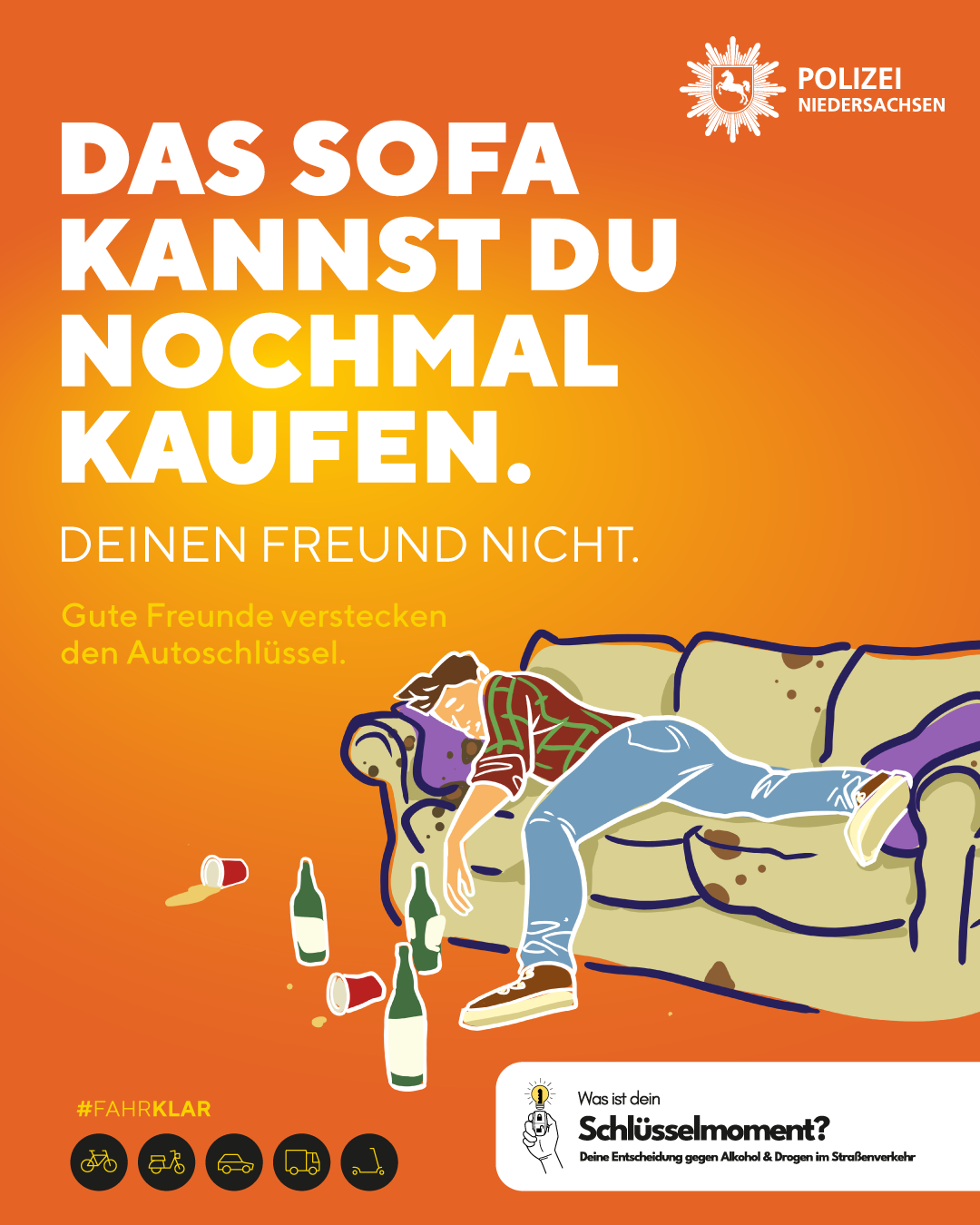 Die im Mai 2022 gestartete landesweite Kampagne #FAHRKLAR der Polizei Niedersachsen wurde im Oktober 2024 aktualisiert und um neue Elemente erweitert. Mit der neuen Leitidee „Was ist dein Schlüsselmoment?“ soll ein neues Bewusstsein für Alkohol, Cannabis oder andere Drogen am Steuer geschaffen werden. Im Rahmen der Kampagne berichten fiktive Charaktere auf Plakaten, Postkarten und in den Sozialen Medien über ihren persönlichen Schlüsselmoment und warum sie ganz bewusst auf berauschende Mittel am Steuer verzichten und im Zweifel stattdessen auf den öffentlichen Nahverkehr wie Bus und Bahn umsteigen. Dieser individuelle „Schlüsselmoment“ kann helfen, Leben zu retten und Unfälle zu vermeiden.